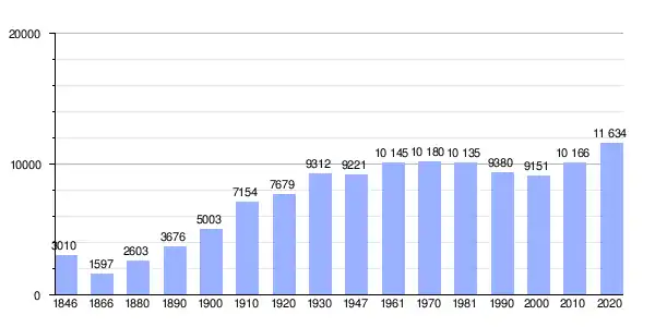 Gráfica de evolución demográfica de Hemiksem entre 1846 y 2020 |