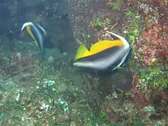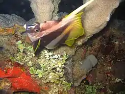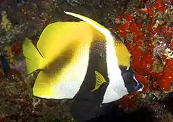 El pez estandarte enmascarado (Heniochus monoceros) es un pez marino, de la familia de los Chaetodontidae.