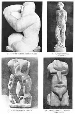 En el plan artístico, Henri Gaudier-Brzeska fue influenciado por primera vez por Auguste Rodin, y también por la escultura primitiva, que descubrió en el Museo Británico,y en el Victoria and Albert Museum. Sus obras son directas, dinámicas y dejan rastros visibles de su trabajo artístico. Gaudier-Brzeska había trabajado cuatro años sólo como un escultor, sin embargo, sus esculturas y miles de dibujos influyeron en el arte francés e inglés del siglo XX. Se pueden ver sus obras en el Museo Nacional de Arte Moderno de París, el Museo de Bellas Artes de Orleáns, en la Tate Gallery en Londres o en los museos en Chicago, Nueva York y Ottawa.