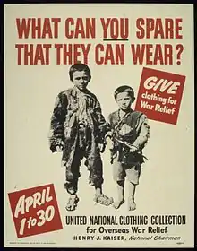 Henry Kaiser fue uno de los primeros defensores de llevar ayuda estadounidense a quienes sufrían la agresión nazi en Europa. En 1940, un año antes de que los entonces neutrales Estados Unidos entraran en la Segunda Guerra Mundial, Kaiser era el presidente nacional de la Unión para la Recolección de Ropa para el Alivio de la Guerra Internacional, creada con el fin de proporcionar ropa a los refugiados de las zonas conquistadas por Hitler en Europa, mientras Estados Unidos todavía mantenía su postura "aislacionista".[5]