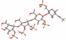La heparina —del griego ηπαρ (epar), hígado—, es un glicosaminoglicano muy sulfatado que se utiliza ampliamente como anticoagulante inyectable, y tiene la densidad de carga más alta conocida de todas las biomoléculas. También se puede utilizar para formar una superficie interior anticoagulante en diversos dispositivos experimentales y médicos tales como tubos de ensayo y máquinas de diálisis renal.