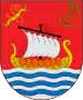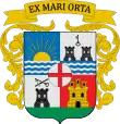 En campo de oro, tres rocas de su color, sumadas, cada una de ellas de tres matas de ortigas de sinople, y colocadas sobre ondas de plata y azur. Timbrado de corona Real, cerrada.[14] |