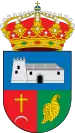 Escudo: Partido. Primero de plata, una encina arrancada de sinople, frutada de oro; segundo de azur, dos villas, de oro puestas en palo. Al timbre corona real cerrada.[42] |