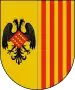 «Cuartelado: en el 1º, de gules, un castillo abierto de oro acompañado de tres pajas de lo mismo puestas en banda a cada lado; en el 2º, de plata, un agnus Dei echado reguardante de púrpura nimbado de oro, llevando una bandera de gules cargada con una cruz llena de plata y con el asta cruzada de oro; en el 3º, de plata, un rebeco arrestado contornado de sinople; y en el 4º, de gules, una cruz patada tripartida de oro. Al timbre, una corona mural de pueblo.» Blasón aprobado el 14 de diciembre de 1989. DOGC n.º 1.241 de 12 de enero de 1990.[26][27] |