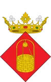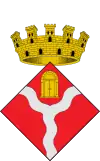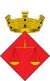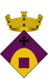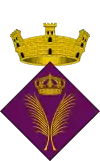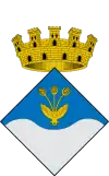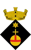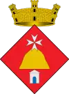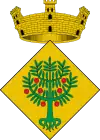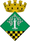 «De oro, un pino de copa alta arrancado de sinople acompañado de un cuchillo de azur encabado de sable a la diestra y de una palma de sinople a la siniestra, ambos puestos en palo. Al timbre, una corona mural de pueblo.» Blasón aprobado el 7 de julio de 1983. DOGC n.º 360 de 2 de septiembre de 1983.[25] |