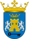 De oro, un castillo de sable abierto, acostado de dos olmos de sable. Al timbre, corona mural de pueblo. Aprobado el 12 de marzo de 1991.[15] |