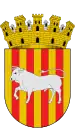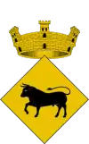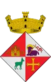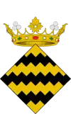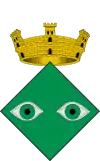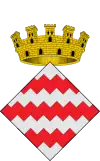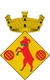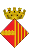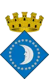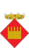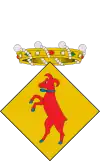 «De oro, un monte de sinople moviente de la punta sumado de un castillo abierto de sable, acostado y acompañado al frente de tres cachorros de sable. Al timbre, una corona mural de pueblo.» Blasón aprobado el 9 de julio de 1993. DOGC n.º 1.775 del 26 de julio de 1993.[31] |
