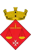 «De gules, una balanza de oro acompañada en la punta de una cruz de Malta de argén. Por timbre una corona mural de pueblo.»[32] |