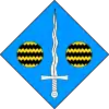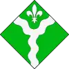 «De oro, cuatro palos de gules, brochante sobre el todo, una flor de lis de azur.»[5] |