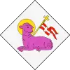 Más información en Albagés. «De azur, un Agnus Dei de plata, echado y de cabeza contornada, portando una bandera de gules con la cruz plena de argén y el asta cruzada de argén. Al timbre, corona mural de pueblo.»[9] El 10 de octubre de 2007 el ayuntamiento en pleno municipal acuerda cambiar el esmalte del campo del escudo de color sable a azur. El agnus Dei tumbado simboliza san Juan Bautista, el patrón del pueblo. |