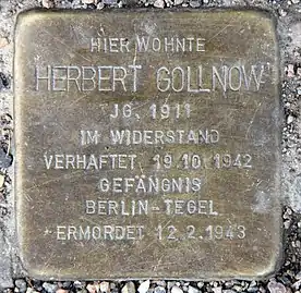 - «Herbert Gollnow». Stolpersteine in Berlin (en alemán). Koordinierungsstelle Stolpersteine Berlin. Consultado el 11 February 2021.