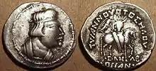 Acuñó monedas de plata al estilo helenístico, utilizando el alfabeto griego. El reverso muestra a la diosa de la victoria Niké sosteniendo una corona de flores sobre Hereo, montado a caballo y posando con una túnica y un gran arco al lado. El retrato nos enseña al jefe con una marcada deformación craneal artificial, una característica común en varias representaciones y esculturas kushán de la primera centuria después de Cristo.