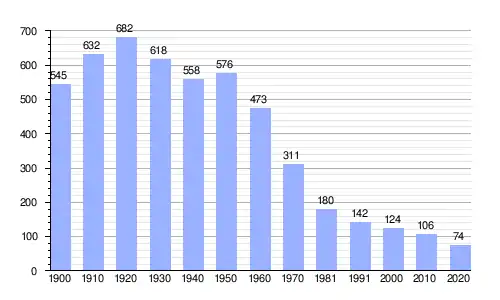 Gráfica de evolución demográfica de Herguijuela del Campo entre 1900 y 2020 |