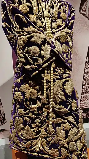 - Túnica bordada morada para Jesús del Gran Poder de la Hermandad de Jesús del Gran Poder (Sevilla) que fue estrenada en el año 1881 y se conoce como túnica de los cardos. [2]