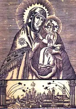 ![]() Nuestra Señora de la Consolación, imagen que representa a la Virgen María como protectora de la ciudad de Turín. Es la titular de la Misioneras de la Consolata. | ||
