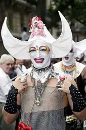 Unas palabras de la hermana Irma Geddon de Portland, miembro de la Orden de La Dicha Benévola que tiene su sede en Oregón, sirven para explicar la utilidad y eficacia de usar ropa de monja con estética Drag Queen: "La ligereza de todo, sumada a la cara blanca y el hábito de monja, son mecanismos para llegar a la gente. Estar así vestidas, algo así como de sagrados payasos, permite a la gente interactuar con nosotras."[5]
