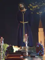 - Sayón Imagen realizada por D. Alfonso Berraquero García en 1983 y restaurado en el año 2008 por D. Joaquín Domínguez Vidal. El sayón aparece en la parte delantera del Misterio a la izquierda de Jesús, reflejado antes de golpearle. Su crueldad contrasta con la humildad de Cristo.