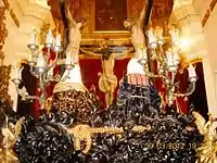 El misterio representa las Tres Necesidades –escaleras, sábanas y sepulcro-. En él aparecen: Cristo crucificado y muerto, la Dolorosa con San Juan, María Magdalena, María Salomé, María de Cleofás, José de Arimatea y Nicodemo, así como las imágenes del Buen Ladrón y el Mal Ladrón crucificados.