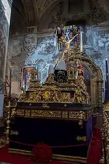 La figura de Cristo fue tallada en 1659 por Pedro Roldán y fue restaurada en 1904 y en 1985.