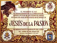 - 15 de agosto de 1947 Inauguración del azulejo de N. P. Jesús de la Pasión en calle Silos.[13]