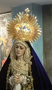 Como curiosidad nos encontramos con la única dolorosa de manos entrelazadas de la Semana Santa de Sevilla.