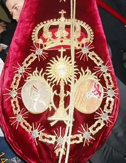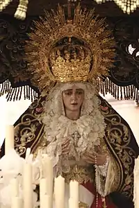 El paso de palio tiene piezas doradas y plateadas.[4] El palio fue realizado en 1929 por Rodríguez Ojeda. Los ciriales fueron realizados en 1992 por José Manuel Ramos.[1]