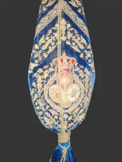 Túnica en la virgen y antifaz azul      Túnica blanca en el cristo y capa blanca en la virgen