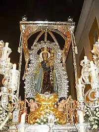 2. Existen otras antiguas leyendas de hallazgos de imágenes de la Virgen en España y en el extranjero. Pueden mencionarse varios ejemplos. En Badolatosa un niño pastor llamado Francisco Gómez encontró una imagen de la Virgen en un lentisco el 8 de septiembre de 1384. Se conserva en la ermita de Fuensanta.[4] En Cantillana, el fraile Isidoro encontró una Virgen en el siglo XVIII, la Divina Pastora, que está en la iglesia de Santa Marina.[4] El 3 de octubre de 1701 la Virgen del Rosario de Yauca, en Perú, fue encontrada entre unos matorrales.[5] En el entorno de la localidad de Fátima, Portugal, ha habido varias apariciones de la Virgen anteriores a la de 1917, que es la más conocida. En una de esas historias (ocurrida probablemente a comienzos del siglo XIX, siendo papa Pío VII) una pastorcita muda tuvo una aparición mariana y, como recuperó el habla, su padre fue al lugar del milagro. Allí encontró a una virgen de madera entre unas ortigas. En ese lugar se levantó un santuario,[6] a unos seis kilómetros del Santuario de Fátima.