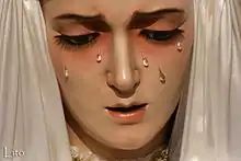 Representa el momento en que Jesús muerto en el regazo de su Madre, es amortajado por las Tres Marías, que portan el sudario, presenciando la escena San Juan y los Santos Varones, José de Arimatea y Nicodemo (Jn 19,38-40; Lc 23,50-56; Mc 15,42-47; Mt 27, 57-61). La imagen de Jesús fue tallada en 1677 por Cristóbal Pérez,[1] y fue restaurada en 1999 por Juan Manuel Miñarro. La Virgen está atribuida a La Roldana y lleva una diadema realizada en 1939 por Landa.[1] El resto de figuras parecen coetáneas, pero son de autor desconocido.[1]
