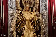 La corona de la Virgen de los Remedios es de cobre dorado. Fue realizada por Cristóbal Ortega en 1893.[11]