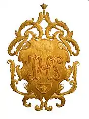 Compuesto por un blasón en oro sobre el cual está inscrito el monograma JHS remarcado en gules. Timbrado por la flor de lis, la cual también aparece debajo del monograma, que simboliza la iluminación, la perfección y la resurrección. Alrededor del blasón se entrelazan palmas, que representan el triunfo, y laurel, representando la gloria.