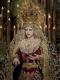 El paso de palio lleva exclusivamente en su exorno floral flores de azahar, las cuales son repartidas a los fieles el Domingo de Resurrección en la tradicional "Misa del azahar".