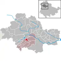 Se encuentra ubicado al norte de la ciudad de Eisenach, al noroeste de Erfurt, la capital del estado.