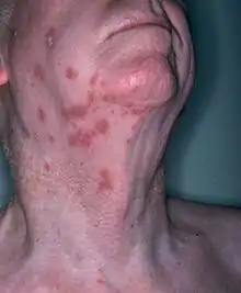 En individuos inmunodeprimidos puede producirse el herpes zóster generalizado: las lesiones aparecen a distancia del dermatoma afectado al diseminarse el virus por vía hematógena desde el ganglio, el nervio o la piel infectada. El herpes zóster necrótico se produce cuando las ampollas evolucionan a úlceras profundas y necróticas, que puede conllevar sobreinfección bacteriana y una posterior septicemia.[59]
