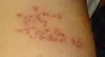 El herpes zóster puede ser confundido con el herpes simple, la dermatitis herpetiforme y el impétigo, y con lesiones cutáneas producidas por candidiasis, erupciones debidas a fármacos, dermatitis de contacto y picaduras de insectos.[38]