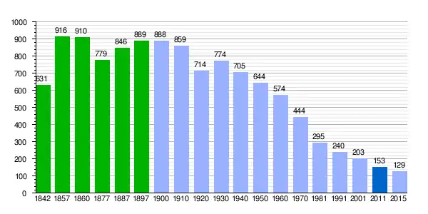 Gráfica de evolución demográfica de Herrín de Campos[3] entre 1842 y 2015 |