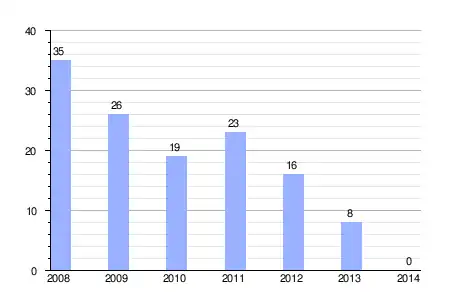Gráfica de evolución de la deuda viva del ayuntamiento entre 2008 y 2014 |