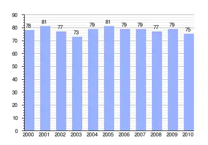 Población de derecho (2000-2010) según los censos de población del INE a 1 de enero de cada año.[5] |