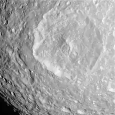 ![]() El cráter Herschel fotografiado por la sonda Cassini el 13 de febrero de 2010. | ||