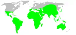 Su distribución es amplia, por toda la zona tropical y subtropical, encontrándose por todo el planeta salvo la parte septentrional.