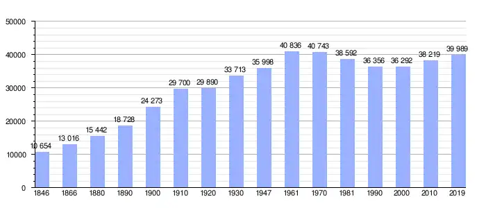 Gráfica de evolución demográfica de Herstal entre 1846 y 2019 |