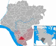 Se encuentra ubicado al oeste del estado, cerca de la desembocadura del río Elba en el mar del Norte y al noroeste de la ciudad de Hamburgo.