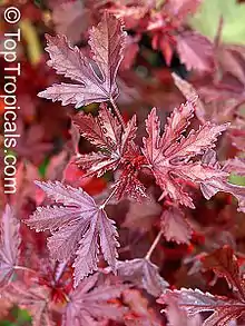 Tiene las hojas de color rojo que recuerda a un arce japonés. Las flores, que están abiertas solo un día, se utilizan en ensaladas. Las hojas jóvenes se pueden añadir a las ensaladas o picadas, ser utilizadas en frituras. Hay que tener en cuenta que las hojas no son dulces. Un pariente cercano, Hibiscus sabdariffa, la verdadera flor de Jamaica, también se llama el Hibiscus arándano . Sus grasas se utilizan desde la Florida hasta América del Sur para hacer una bebida con sabor a parecido al arándano agrio.