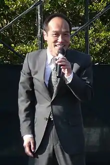 - Brasor, Philip (1 de abril de 2007). «From comedian to politician: an easy step for Miyazaki's governor». The Japan Times. Consultado el 13 de junio de 2019.