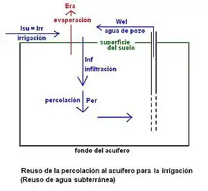 La percolación Per se bombea de nuevo por los pozos para regar (Wel), entonces: