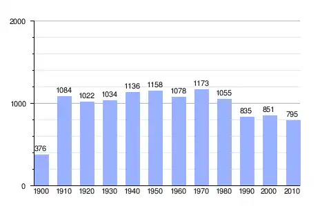 Gráfica de evolución demográfica de Highmore entre 1900 y 2010 |