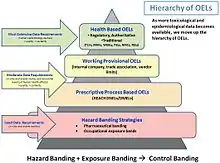 - Evaluación de la exposición (seleccione límites de exposición ocupacional, bandas de peligro, datos toxicológicos relevantes para determinar si las exposiciones son "aceptables", "inaceptables" o "inciertas")