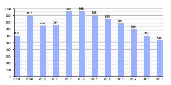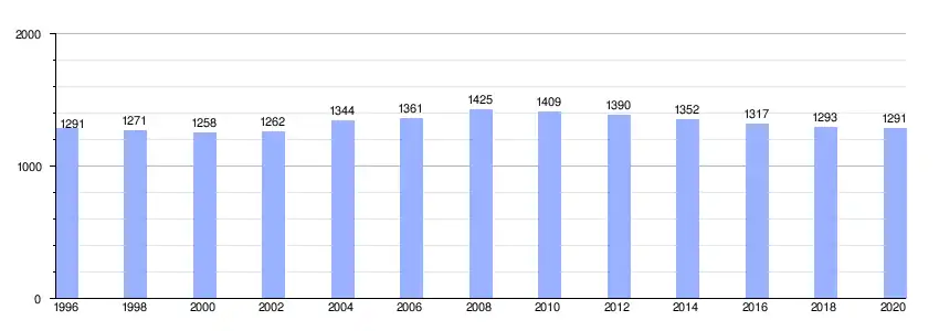La población del municipio se ha mantenido estable en las últimas décadas en torno a los 1 300 habitantes, con un pico máximo de población en 2008.[2]