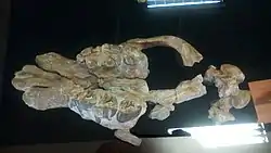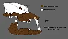 ![]() El cráneo del holotipo de H. castanedaii, en vista ventral. Museo Geológico José Royo y Gómez, Bogotá. | ||