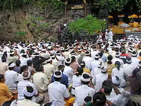El hinduismo balinés es una amalgama de religiones indias y costumbres animistas indígenas que existían en el archipiélago indonesio antes de la llegada del islam y más tarde, del colonialismo holandés.[19] Integra muchas de las creencias fundamentales del hinduismo con las artes y rituales del pueblo balinés. En la época contemporánea, el Ministerio de Religión de Indonesia se refiere oficialmente al hinduismo en Bali como Agama Hindu Dharma, aunque tradicionalmente, la religión recibió muchos nombres como Tirta, Trimurti, Hindu, Agama Tirta, Siwa, Buda y Siwa-Buda.[20]